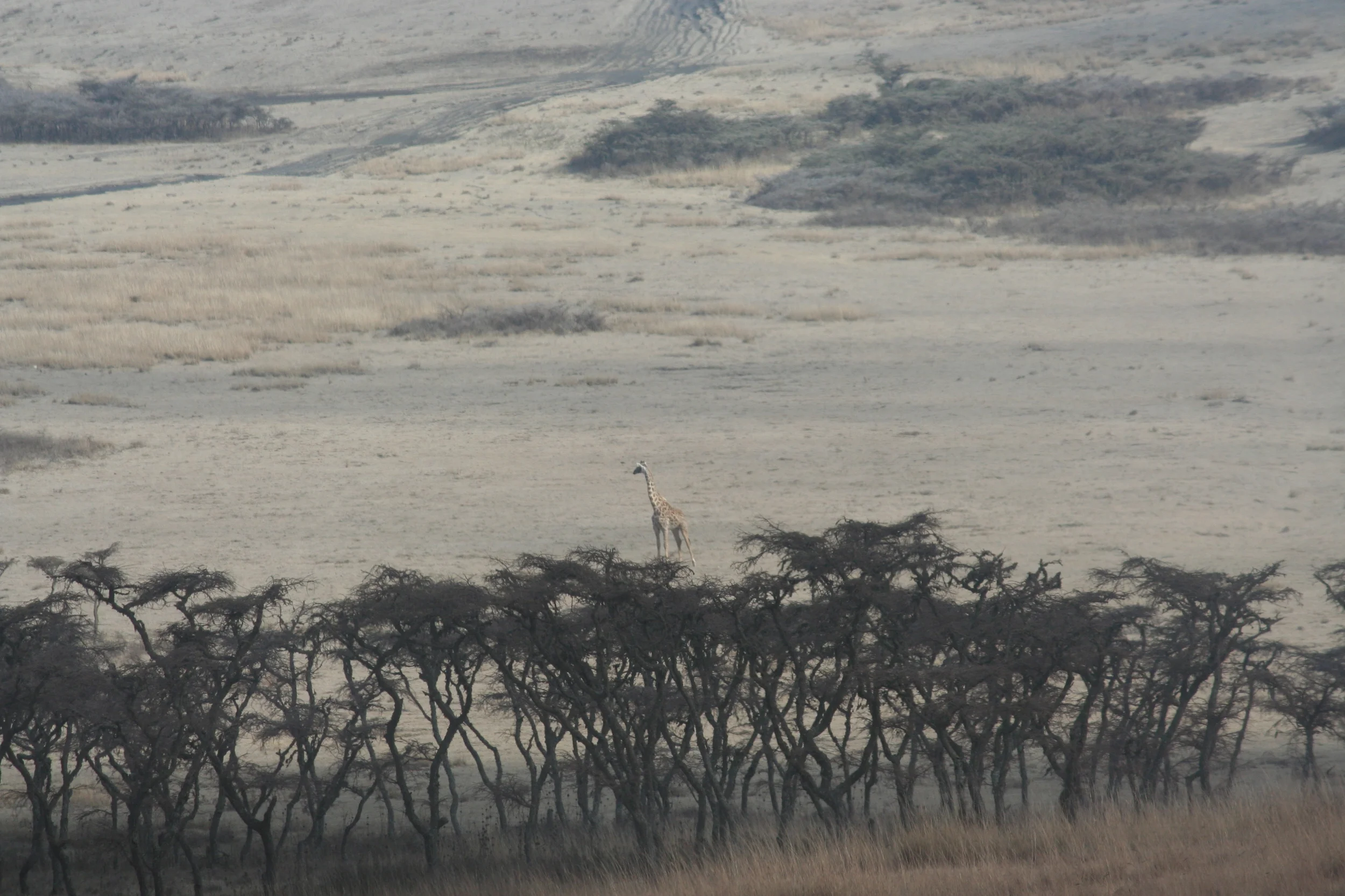 We grabbed the binoculars and Mikey’s tourist-safari hat as we drove down the bumpy clay road to see the animals in the Crater. There were a few animals to be expected – wildebeest, zebras, Thompson gazelle, and we saw them in plenty. They were exciting to see, no doubt; these creatures we won’t find roaming around in our backyards. But they were not the shining stars of the day, as we had many surprises. While driving into the Crater, we happened to glance out the window and spot, waayyyy off in the distance, a lone giraffe!!! They are rare to see around the Crater and we thought we had no shot in the dark of seeing one, yet there it was. I named it Trent J It was standing so still, we thought it was just plastic for a while! Then it flicked its tail and took a few long strides, to our amazement. It was our first sighting of any animal today and it set the bar pretty high for the rest of the day.