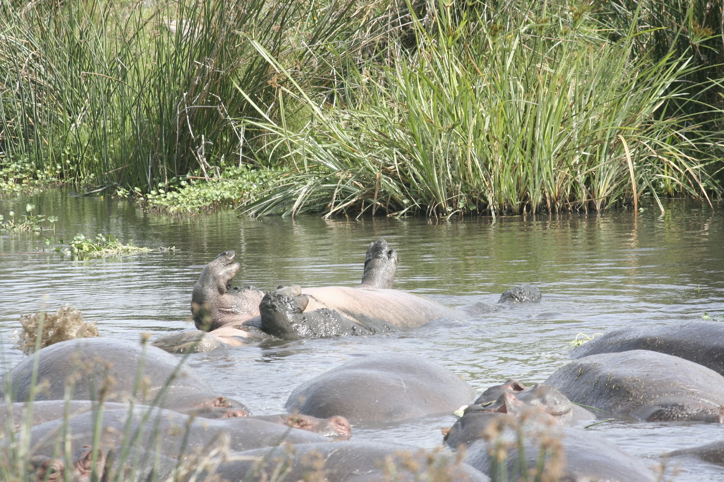 Somewhat similar to elephants are hippos (kiboko in Swahili), of which we saw many. They weren’t idle and didn’t appear as just logs sticking out of water though; they were barrel-rolling, splashing, talking, and fighting. We must have seen 30 active hippos today. They were great to see, not so great to smell.