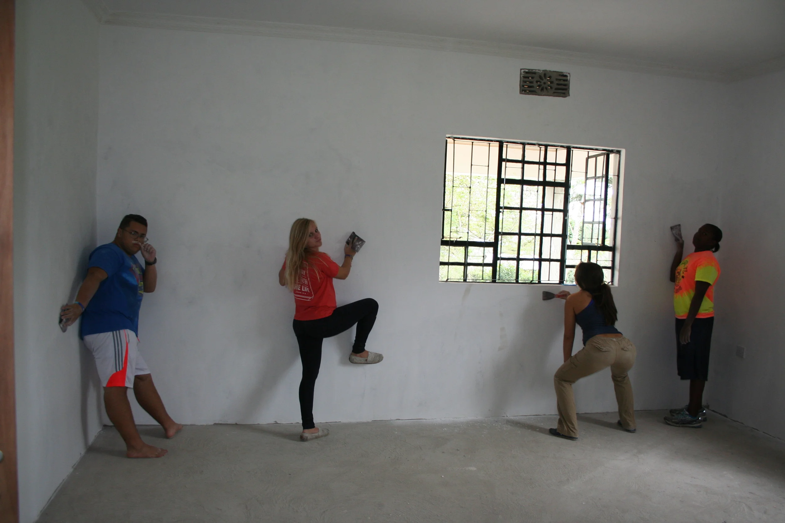 When we finally reached Small Steps we parked near the new building which we were planning to work on today. We didn’t want to go to the main house where the girls stay, because we would get caught up playing with them and not get as much work done (they are way more fun). We all piled out of the car and went straight to work. We sandpapered all the rooms and let’s just say it got powdery real fast. Mike even had a nice powder mustache growing half way through. Madi and Elivia were doing squats and other exercises while they worked. After making all the walls nice and smooth we wiped them off, to get ready for the painting fun tomorrow.