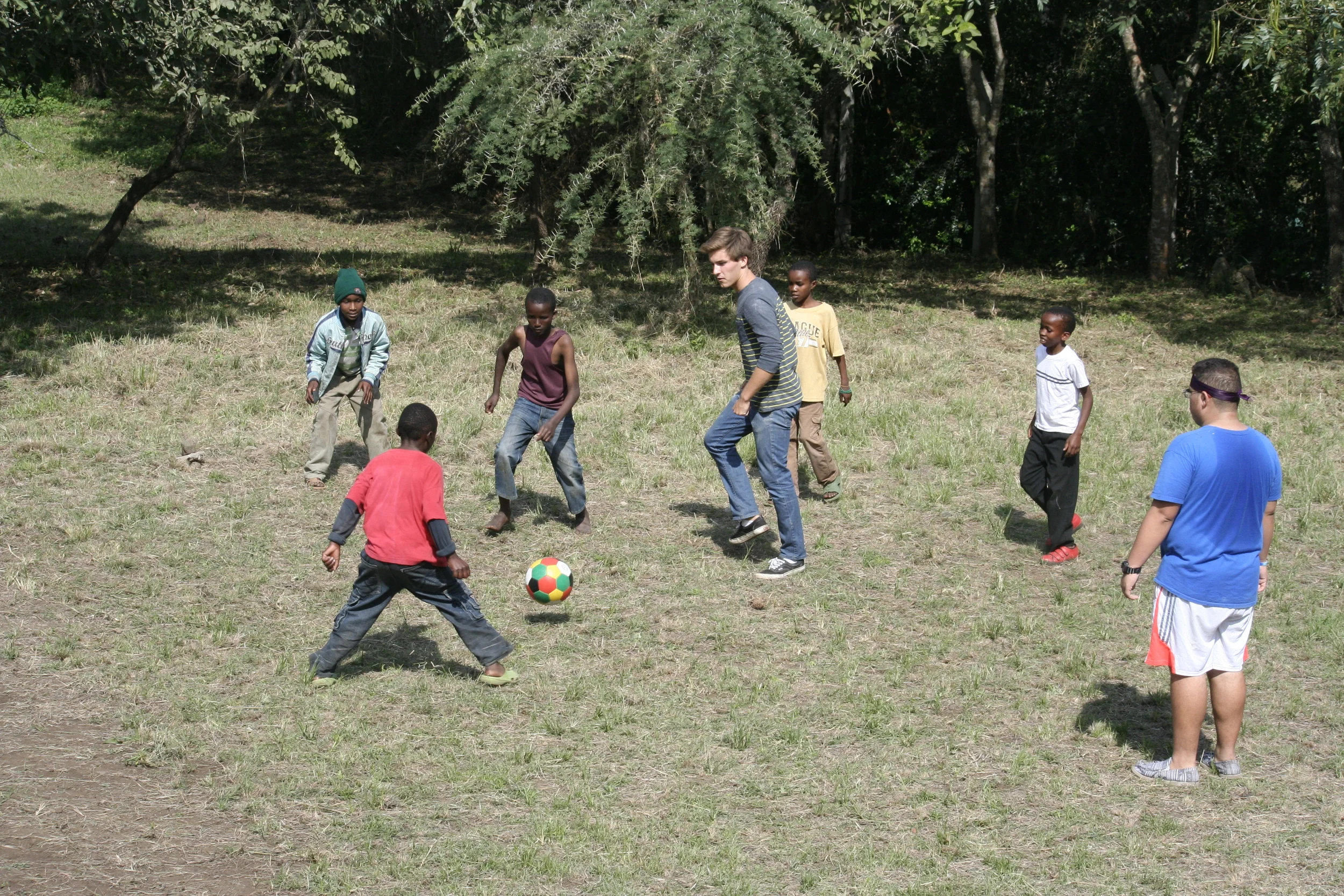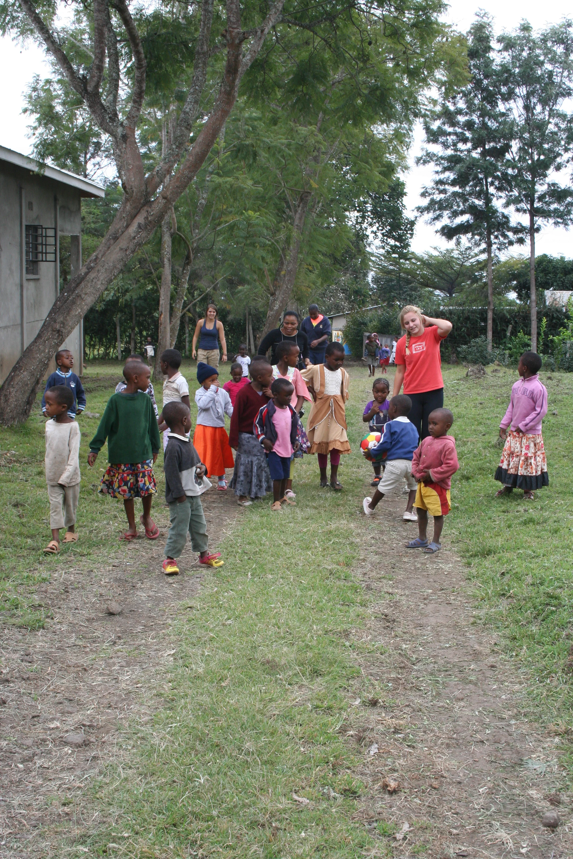 It was almost two o’clock and we were expecting company from the local children, so we headed out to the front gate to meet the kids. It was a big turnout we had over a 100 kids, it’s amazing how word can spread without technology or signs or anything. We had just decided on Friday afternoon that we would invite kids for Sunday and Juma “put the word out.” We had fun playing soccer, singing, and playing games. The soccer game outside was too rough for the little kids so we brought them inside. We sang fun songs that made them laugh and smile. It feels really nice when you can bring smiles to other people’s faces. Then we asked the kids to show us some Swahili games, it was hard to follow but we caught on. We ended the day with a game of Red Light - Green Light, snacks, and lollipops. I think the kids had a really fun time! They left with smiling faces and lollipops in their hands. When they left we played with our girls for a little, mainly just helping them open their snacks. Then we sat outside and waited for the driver to come pick us up. We said goodbye to the girls, it was cute when we drove off and you could hear little voices saying “bye bye”. The ride back wasn’t as bumpy and long but it was smelly, I don’t know what that was but it was BAD.